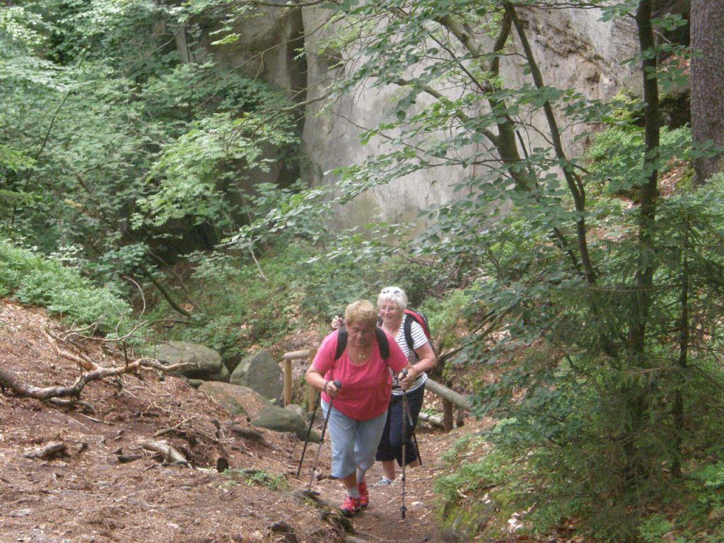 Výlet se uskutečnil v sobotu 4.6.2016. Trasa byla necelých 11km, možná trochu náročnější, ale zvládly ji i zdatnější seniorky! Úvodní "kopeček" vystřídala rovinka, která byla stoupáními jen mírně prokládána. Dobrodružný výstup na skalnaté Drábské světničky byl odměněn nepřekonatelným výhledem. Oběd v restauraci Na krásné vyhlídce nám zpestřil "sjezd veteránských vozů" s posádkami oblečenými v dobových kostýmech. Závěrečné stoupání na hrad Valečov už byla jen pomyslná tečka okořeněná pohádkovými postavičkami v lese, neboť zde probíhala oslava dětského dne. Celý den bylo krásné, slunečné počasí, drobný, krátký deštík nás zastihl až při zpáteční cestě na dálnici.